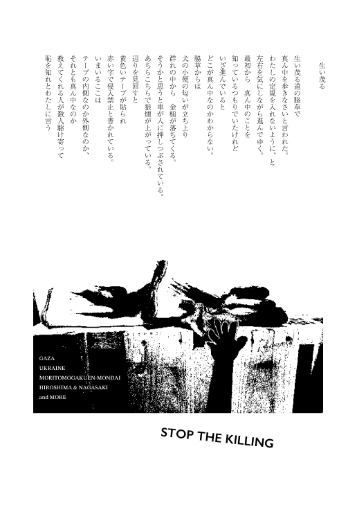 午前、双紙の夏谷さんの文章の2ページ目の修正作業。午後、『つぶやき詩集』の試作2回目の作業。一度作った組版の修正作業。行間全角と二分を全角だけにする。それから二つ折りにした時の小口から本文中央行までの長さを決め(55mm)、合わせる作業。それが終わり、試し刷りをコピー用紙に散々行う。体全体が疲れ果てる。