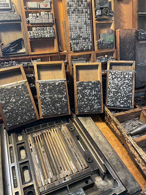 和紙の断截。それをしている間に木活字が届く。それからは、梱包を解き、木活字を並べて整理する作業に没頭。