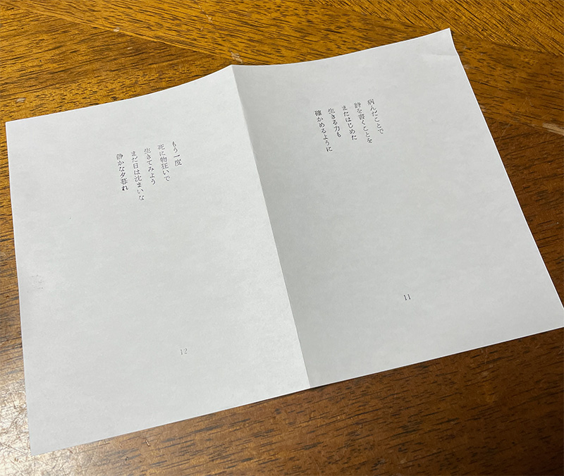 『つぶやき詩集』のプロトタイプ2号の印刷。