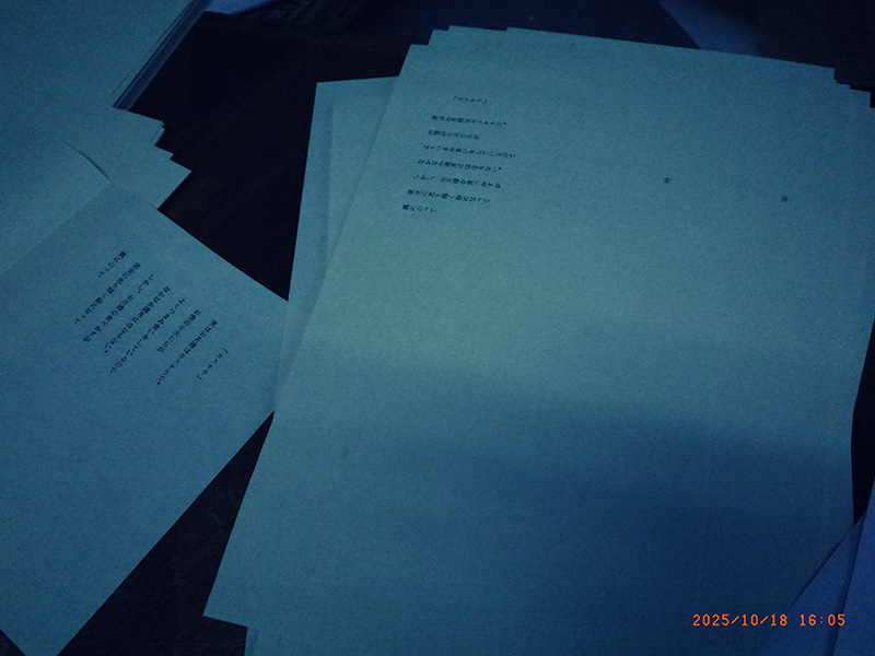 工房に入り、詩誌の印刷。最初に昨日印刷をした詩「晴れた日」の文選。それからゲラ出しをして校正。本刷り。1つの詩で2頁分。それ終わり、気持ちが変わり、次の詩ではなく、依頼を受けている添え書きの文の印刷をしようと急に思い立つ。今、圧板につけている胴張の上にA4 のコピー用紙を置き、そこに添え書きの印刷をする。そのコピー用紙の位置に印をつけ、一旦取り出し、葉書大の半分の大きさの用紙を置き、見当針の装着位置をチェックし、見当針をマスキングテープで装着する。そして、胴張に戻し、試し刷りを行う。それからひえこう水平の位置をチェックし、見当針を少し動かし、ゲラ出しを行う。すると、摩耗した活字とそうでない活字の差が大きい。ということで、摩耗が激しい、印影が太くなる活字を取り除き、拡大鏡で活字の摩耗状況を確認しながら、できるだけ線が鋭い新しい活字に交換をする。それから本刷りを行う。3キロ走る。午後、午前に印刷をした「晴れた日」の解版を行い、すだれに活字を戻し、「カステラ」の印刷に入る。また文選を行い、ゲラを出し、校正し、本刷りへ。1頁目の印刷を終える。
