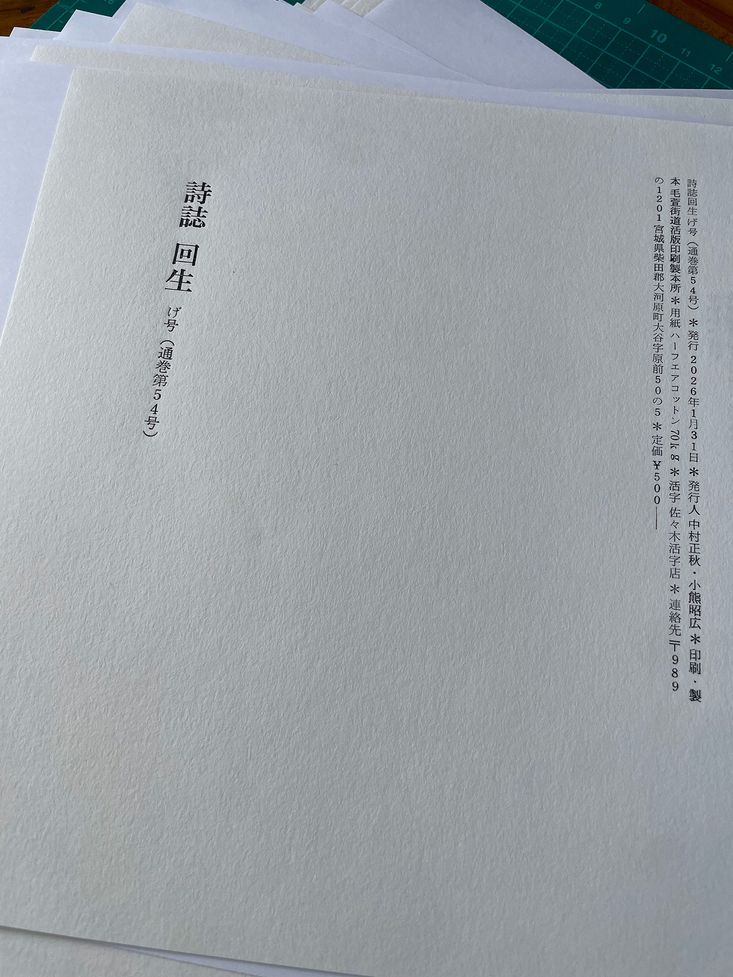 詩誌 回生げ号(通巻第54号)を発行しました。