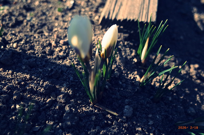 寝ていて、喉が痛くなる。いや、痛みがある気がしてくるだけなのかもしれない。唾を飲み込むと肉にギザギザが通る。昨日、天然温泉に行ってのんびりしたせいだろか。そこでコロナとかインフルエンザとかにり患してしまったのだろうか。そう思えば思うほど不安が膨れ上がる。双紙の製作も遅れるし、母の介助もできなくなる。なんだろう。いや、真っ昼間から暖かい風呂に入って、露天風呂なんかも肩まで浸かって体がのんびりした後に外をマルと散歩したから湯冷めしたのだろう。などと考えてうつらうつらとしていると、一気に大きな爆弾が落ちてくる。逃げ惑う。クロッカスが昨日から咲いている。いつもいは工房の前の庭に咲くのに、今年は駐車場の脇の場所に咲いている。白いクロッカス。