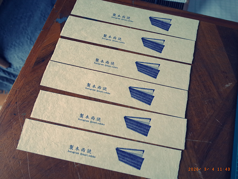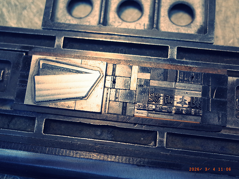 雪は思ったよりも積もってはいなかった。春の雪だ。シャーベット状にどろどろになっている。土手に向かわず、家の近くの墓を一周する。マルは邪魔するものがないので気軽に歩いている。午前、双紙にオマケでつける栞の製作。この作業で一番の難所はmariさんのインスタグラムのアカウントに出てくるアンダーバーを作字すること。活字はセンチュリーオールド8ポイントを使うが、このフォントにはアンダーバーの活字はない。なので作らなければいけない。作る方法は2つ。罫線で作る方法とアンダーバーに使えそうな活字を削って作る方法。約物や数字を収めている8ポイントの活字すだれを見ると二分のハイフォンの活字が使えそうなので、これを削って使おうと思う。削るのは、作字器を使うか、罫切りを使うか、2通りあるが、どちらも使わず、ジャッキで二分のファイフォンの活字を挟み込み、固定し、銅版画で使う銅を削る道具を使って作る。板で挟んだ活字(下に五号四分のインテルを入れてかさ上げの高さを調整した)をバニッシャーやドライポイント用の刃物で削ってゆく。印刷をしてみるとものになりそうなので、微調整を行い、完成させる。この辺の削り具合や手加減は、すべて感。やりすぎないこと。活字を削ったので上部に小さなスペースができる。そこには削った余りの金属インテルの欠片を入れ込む。上出来。印刷は、インクの色を藍色にする。これで印刷開始。難なく終わる。あとは4センチ幅に作った栞の幅が広いので、もう少し狭くする。これは断裁機で作業する。午後、4月に行われ、出展する仙台市秋保で開催される手ん店のチラシやはがきが今日届いた。それと印刷を発注していたワークショップのチラシが完成して届いているので、両方を持って近くのセレクトショップマーブルに伺う。置いていただく。
