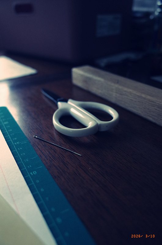 一日中、母屋のリビングで双紙の糸綴じと誤植の切り貼りによる修正作業。ひたすら机に座って作業をしていると、そばに人がいるからだろう、マルは落ち着いて床に寝そべって静かにしている。2人で静かに1日を過ごす。これで双紙は全ての作業を終える。それから郵便局に行って最後の発送を終える。