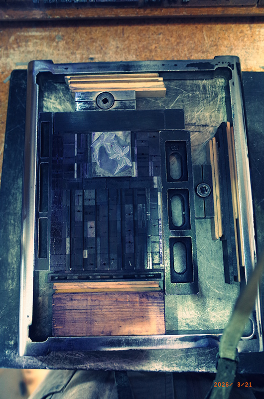 工房で終日西田さんに頼まれた一筆箋の印刷。一筆箋は同じ組版で凸版の図を入れ替え、それと6ポイントの説明文を入れ替えて2種類作る。最初にテキンのチェースに出来上がった組版を装着する。今のテキンの胴張に装着している見当針の用紙を載せるとはテキンのチェースの枠の下から23センチの位置から印刷が可能となる。それを考えながら組版を取り付ける。見当針に一筆箋の用紙を載せると、用紙の両脇は見当針からはみ出さない。ということは用紙を抑えるストッパーで用紙を抑えることができないことになる。それで、縦に伸びているストッパーに用紙をインクがのった組版からはがすためにインテルを横に装着する。もう片方は、空間が狭いので見当針の先端の細い部分を装着する。印刷を開始。印字は綺麗。問題なし。用紙をテキンの胴張から取り出すためにピンセットで用紙を取り出す。これでは、いちいちピンセットを持ち換えたりするので面倒だ。午前で100枚印刷。午後、焙煎。日の調整の失敗だろか、2ハゼが起きない。その後、工房で目標の残りの300枚印刷。ピンセットを使わずに手で用紙を取り出すことにした。すると、速度が増した。100枚刷ったところで組版の図と活字を入れ替える。テキンを使い、一日で400枚印刷するのは今の私としては少々無理だったかもしれない。膝が変な感覚になり、腰が危ない感じになっている。当然に首と首の漬け菜と背中と肩は痛み出した。
