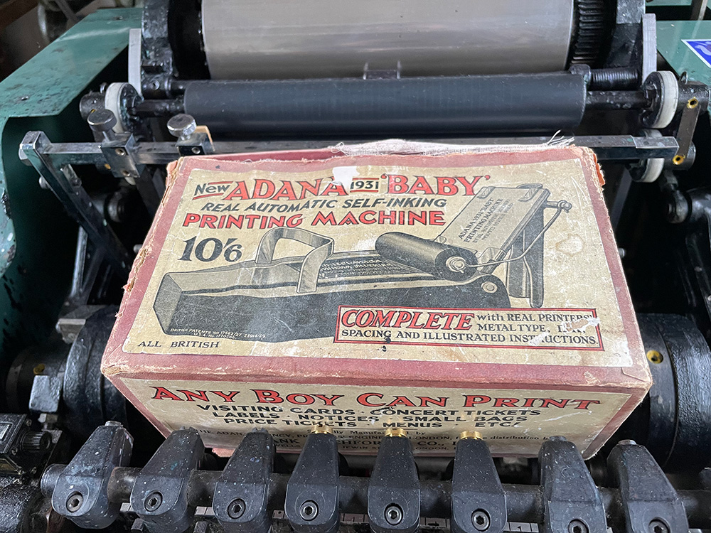 使用する印刷機は、イギリスのアダナという活版印刷の機械や活字を製造していた会社のベイビーという古くて小さな印刷機です。アダナという会社は、今はもうなくなっていますが、家庭用の小さな印刷機を主に作っていました。
