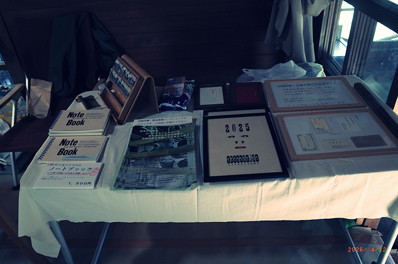 今日は、手ん店2日目。昨日よりもお客さんが多い印象。次から次とロッジに入ってくる。今日は、サミーポール氏と一緒。彼の自宅で拾って秋保に到着。怪獣フィギアを大量に飾る。それに漫画『過去を継ぐ橋』も。若い女の子が表紙を見ただけで、これは私の世界と言って無料配布の1号と1冊100円の2号から7号を買いっていく。1号を見てから買ったらと差し出がましいことを言ったら、いいんです。私が好きな世界だからと云う。そんなこんなで秋ryの一時間前ぐらいにノートブックを名り入りで買いたいと云うお客さんが現れる。それも2冊。家族にこういうものが好きな人がいるからと云う。プレゼントすると絶対に喜ばれるからと云う。入れる文字列を書いていただき、ステッキで文字の長さを調整し、組版に入れて印刷。2冊目は組版に直接文字を組んだが、長さを合わすのに難儀する。こういうときはステッキに限るかなと思う。近所の k 君家族が来てくれる。嬉し。収益は、参加料とほぼい同じ。その他、名刺の注文が2件(そのうち1件は口約束のみ)。てんてんならぬとんとん。帰路、まるまつで打ち上げ。夜、帰宅。