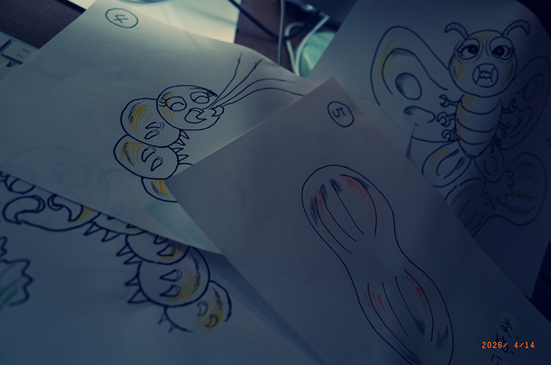 ゆっくりと、イベントで持ち出した道具や資材を片付ける。それからできるだけ休むように心がけて過ごす。しかし、なにかしたくなる。しょうがない。依頼を受けた名刺の活字を揃える。ない活字は活字店に注文する。午後、サミーポール氏の『過去をつなぐ橋』第26話を縮小コピーをしにコンビニにゆく。資料を探しているときに以前サミーポール氏に書いていただいた蚕のイラストを発見。それでなにか作ることにする。スキャンしてコントラストを調整してノイズを消し、輪郭線を太くする。なんとかものになりそうだ。嬉し。