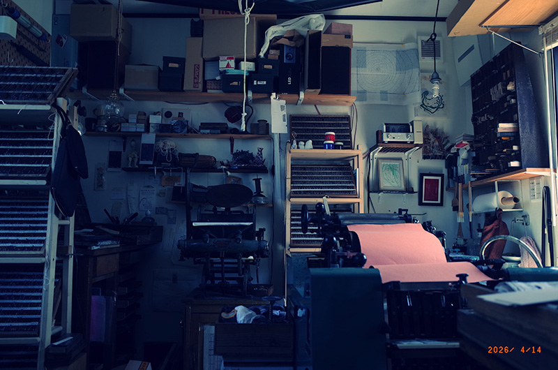 少しずつ、次のことに取り掛かる。昨日作った蚕のイラストの寸法をメタルベースの大きさに合うように調整する。工房とパソコンがある母屋を行ったり来たりしてどういう配置にしたらよいか考えながら製版のデータを作る。結局、五号活字8個分の辺を持つメタルベースに6個のイラストをそれぞれ配置する寸法にする。そしてもう一つ、栞のためのもっと小さな1枚の製版のデータを作る。それを業者にメールで送り、製作依頼を行う。と、返信が来て、データを2階調にする必要があると言われる。これまで特にそうしなくてもよかったような気がするが、凸版の製作においては当然と言えば当然だと思う。母屋でデータを修正し、また依頼のメールを行う。郵便で夏谷さんの詩集が送られてくる。とても良い詩が並ぶ。詩誌回生に書いてくれていた詩とは違ったテーマの詩たちだが、断然こちらのほうが良い。他に、ACTも届く。1日にわたし宛に詩関係の郵便物が複数と届くのは珍しい。午後、工房を片付ける。次の作業に本格的に移る前に気分をあらためる意味でも大切なこと。少し、竹林さんの新しい版画を見て、添える言葉を思い浮かべる。数行ほど、iPhoneにメモする。予定の時間に金子さんが来房。雑話を1時間ほど。如何にこれまで友人と絶縁を繰り返したかを述べ合う。渡辺さんと言う人が書いた宮沢賢治の研究所のような分厚い本をいただく。