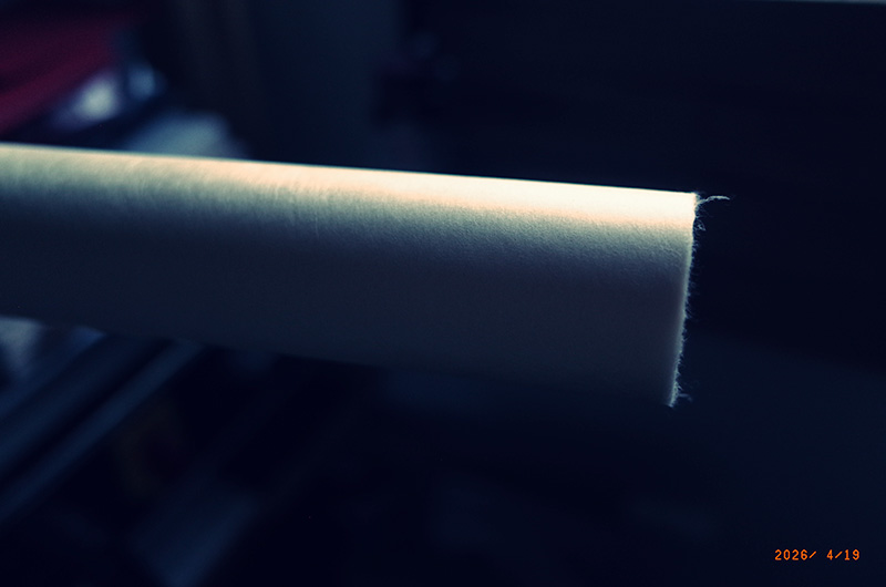 体の調子はあまり良くない。しかし、まゆけばのことが気になる。工房に入り、一昨日作ったまゆけばの栞をまた確かめる。何も変わらないのに、確かめたくなる。状態の変化というよりも、違う時間、違う気分で見た場合、また違ったことが浮かんでくるかもしれないということに期待している。しかし、考えが浮かばないのに、先に手が動く。いや、考えが浮かんだのだろうか。母屋にしまっている雁皮の薄い紙を出してきてまゆけばの栞の裏打ちをする。いったい自分は何を期待してそれを行うのだろうか。やや、焦りだろうか。とにかく、平にしたいという気持ちがある。しばらく重しを乗せて放っておく。午後、再び工房に入り、まゆけば栞のことを確かめる。思ったよりも平に伸びている。それからしばらく放っておく。午後も遅く、再び工房に入る。まゆけばの栞を見る。今度は先端に穴を開けて紐を通したくなる。それで、穴を開ける道具があったはずなのでそれを探し、母屋のリビングでまゆけば栞に穴を開ける。力が余って、リビングの机に丸い傷をつけてしまうが、おおかたうまくゆく。それから絹の和綴の綴じ紐を通す。それをしばらく放っておりて、そばらくしてからまた見直す。今度はスピンを取り付けたくなる。それを実行する。今日はこれで終わり。